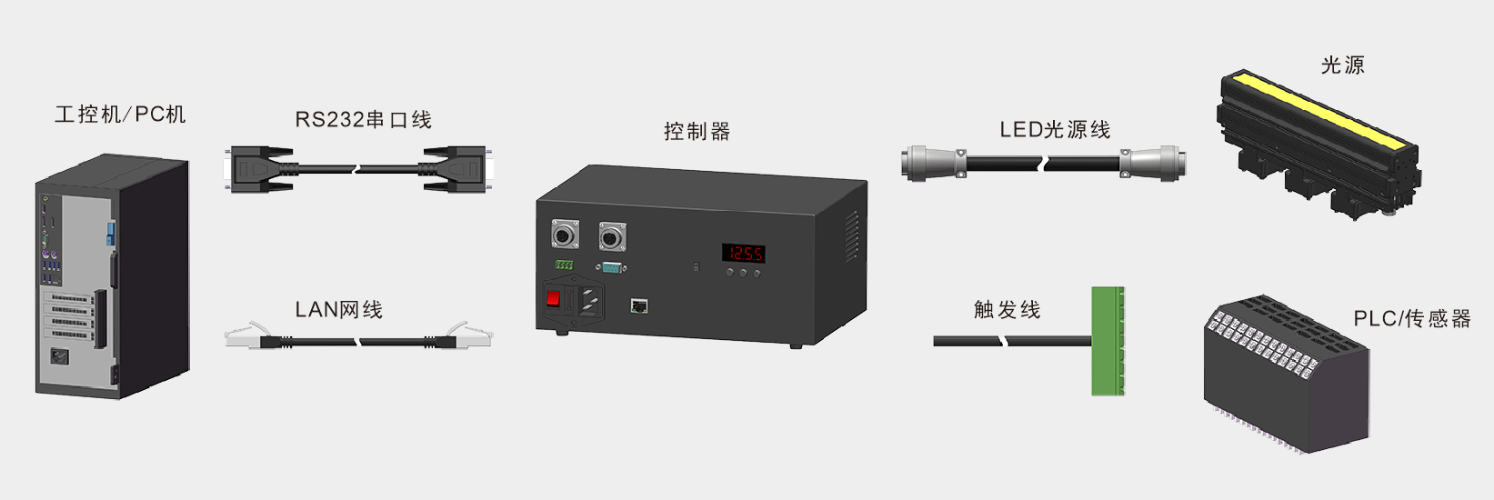 常滅模式(REMO模式):當外部連接觸發信號時,觸發”“輸入高電平5-24V”-“接地時,光源亮。