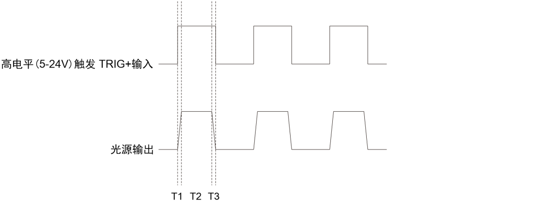 常亮模式(MANU模式):當外部連接觸發信號時,觸發”“輸入高電平5-24V”-“接地時,光源滅。